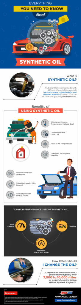 Most people believe all engine oil is the same, but many different types are available with some offering numerous advantages. Synthetic oil is a lubricant for engines made with different chemical compounds instead of crude oil from the ground. By using synthetic oil, your vehicle will benefit from lengthening the engine’s usability, fewer oil changes, withstanding extreme temperatures of both hot and cold, and less buildup in the engine. While the reason behind using synthetic oil can be a variety of things, synthetic oil is frequently used for fast speeds, towing, and repeated start and stops. If you are a vehicle owner, take time to learn about synthetic oil and how it can benefit your vehicle.