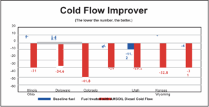 - Lowers cold filter-plugging point (CFPP) by up to 40ºF