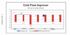 Testing reveals AMSOIL Diesel Cold Flow provides significant cold-flow improvement in diesel fuels found across the U.S., delivering improved cold-weather performance.